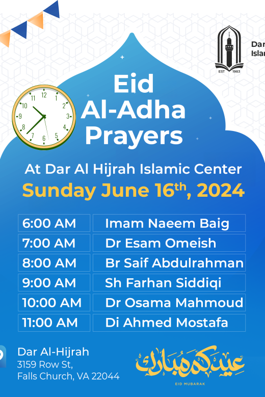6 AM - Imam Naeem Baig 7 AM - Dr. Esam Omeish 8 AM - Br. Saif Abdulrahman 9 AM - Sh. Farhan Siddiqi 10 AM - Dr. Osama Mahmoud 11 AM - Dr. Ahmed Mostafa