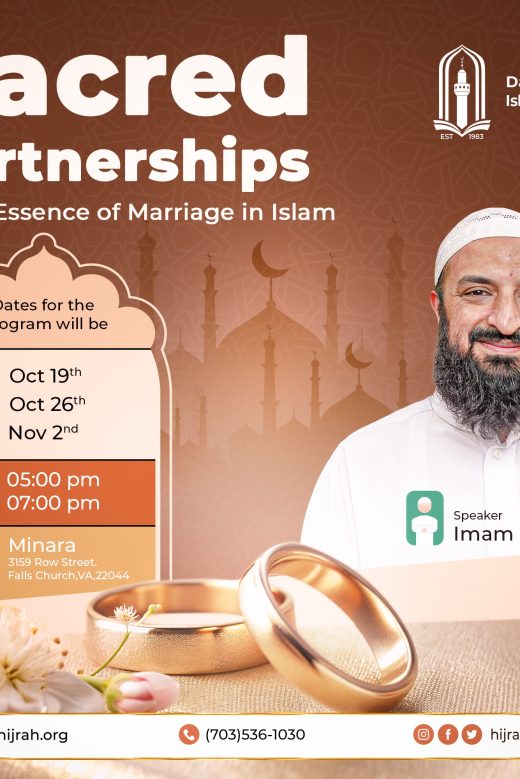 Join us for Sacred Partnerships: The Essence of Marriage in Islam, a deeply enriching series dedicated to exploring the profound teachings and expectations surrounding marriage in Islam. This 3-part event aims to provide a holistic understanding of what makes a successful and fulfilling marriage according to Islamic principles, while also addressing practical expectations and contemporary challenges.