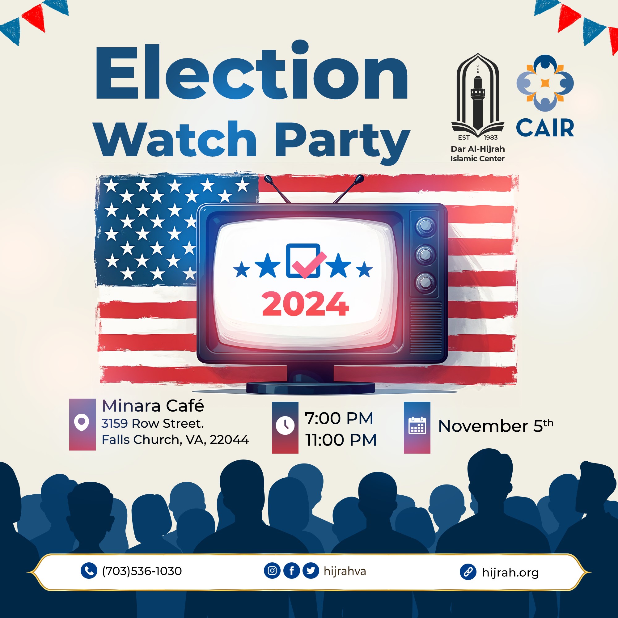 Dar Al-Hijrah 3159 Row St. , Falls Church, United States🗳 Join us for a special Election Night Watch Party at Minara Café on November 5th, from 7-11 PM! 🗳 Dar Al-Hijrah is partnering with CAIR to host an inclusive space for our local Muslim community to gather, watch live election results, and participate in engaging discussions and activities on civic engagement. Let’s come together […]