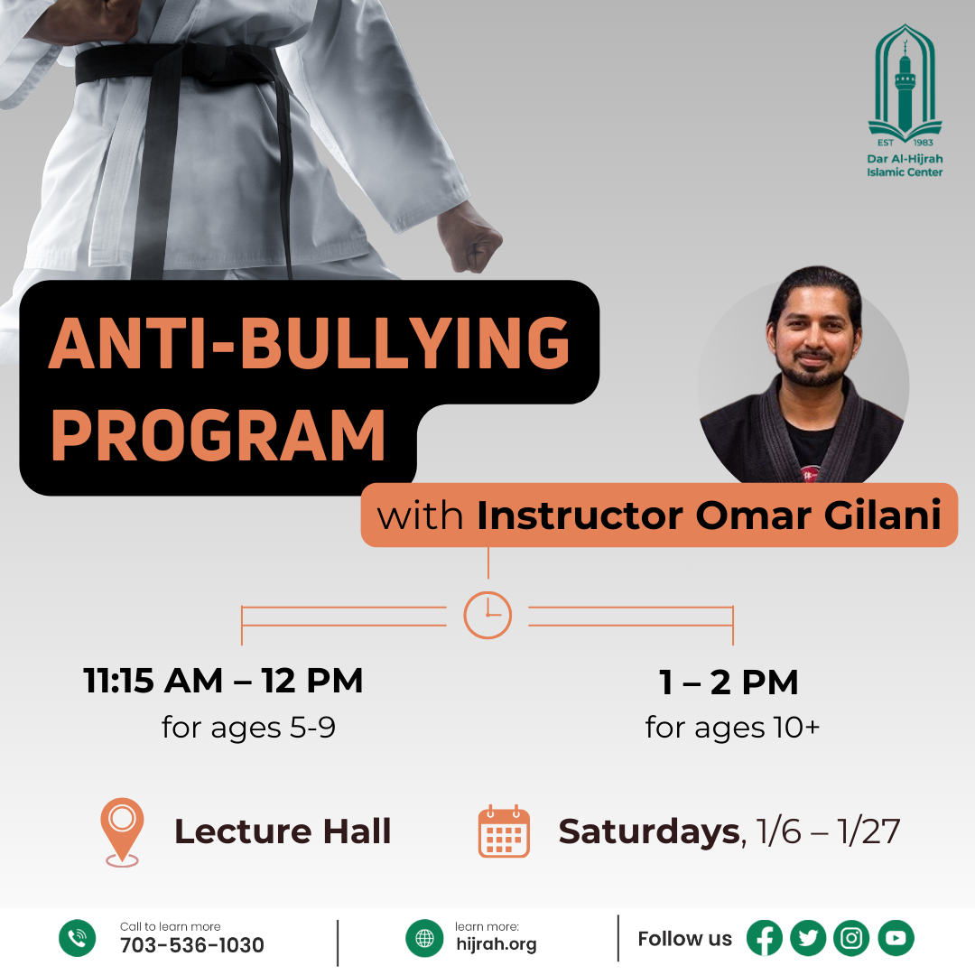 Anti-Bullying Program with Instructor Omar Gilani Saturdays, 1/6 - 1/27 11:15am - 12pm for ages 5-9 1:00pm - 2pm for ages 10+