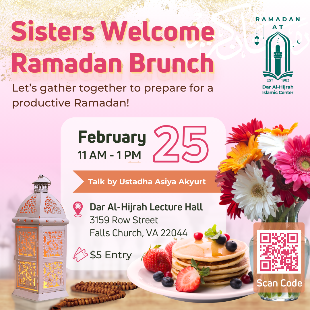 Sisters Welcome Ramadan Brunch - Ustadha Asiya Akyurt Let's gather together to prepare for a productive Ramadan! Feburary 25 @ 11am - 1pm $5 entry